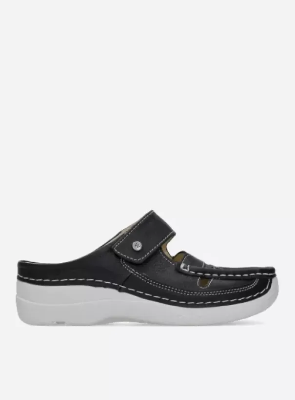 Slippers|Klompen|Wolky Roll Talaria zwart zomer leer
