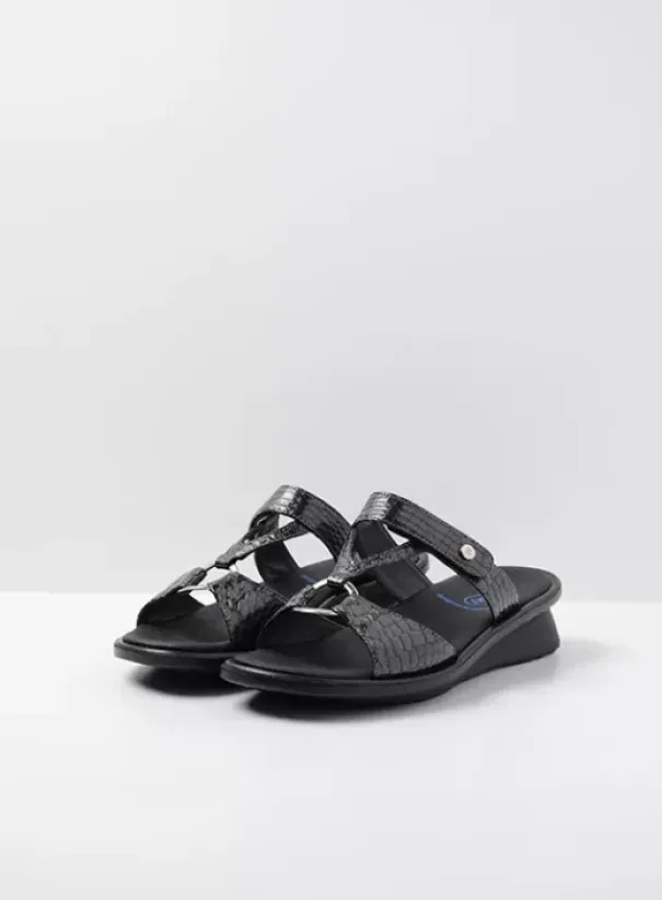 Slippers|Voorjaar/zomer|Wolky Isa antraciet crocolook lakleer