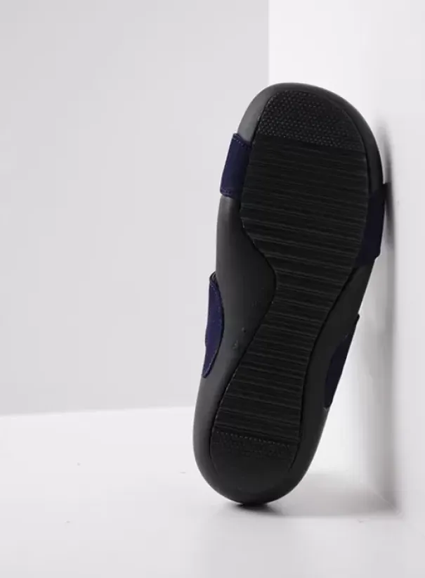 Op veler verzoek terug in de collectie: Wolky’s O’Connor. De band op de voorvoet is met een gesp te verstellen, die op de wreef met klittenband. Zo kun je deze teenslipper optimaal afstellen om je voet en blijft je voorvoet mooi op z’n plek. Het zachte voetbed is gemaakt van memory foam (fijne demping) en heeft een dekje van suède (lekker zacht aan je voeten).