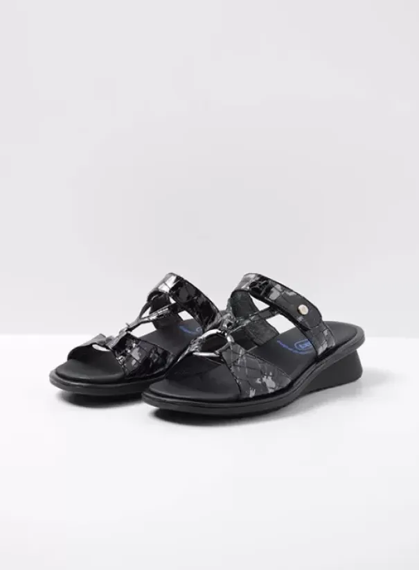 Slippers|Wolky Isa antraciet croco lakleer