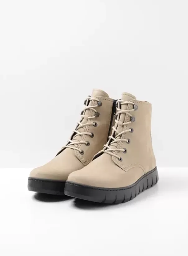 Wolky’s New Wave heeft iets speciaals: de zool lijkt heel plat, maar schijn bedriegt. Door de ingebouwde kuip ligt de hiel iets hoger. Hierdoor is de afwikkeling van de voet makkelijker, wordt de voet goed gestabiliseerd én is je houding beter. Nog een extra voordeel: door de ronde leest is er lekker veel ruimte voor de (hoge) wreef en tenen. Heb je volle voeten? Dan kom je ook prima weg met deze boot.