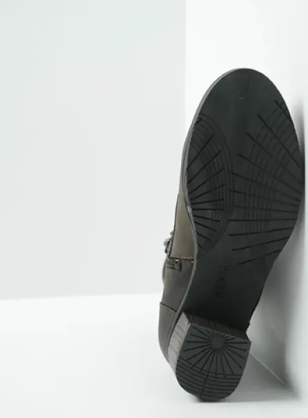 Dit veterlaarsje heeft een met leer omtrokken hak die in de lengte is bekleed. Hierdoor lijkt de hak optisch hoger dan dat hij daadwerkelijk is. Het plateau onder de voorkant van de laars zorgt ervoor dat de hak niet te hoog aanvoelt. De laars sluit zich mooi om je been, wat hem een elegante uitstraling geeft. Door de combinatie van een veter en een rits is de Sarah makkelijk aan en uit te trekken.