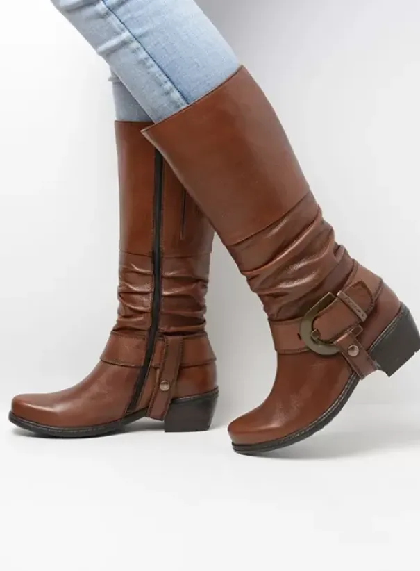 Laarzen|Wolky La Banda cognac leer
