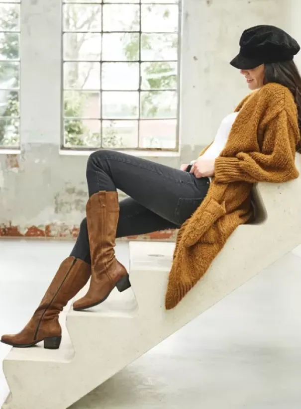 Deze stoere en lange cowboylaars heeft een rits aan de binnenzijde en twee geheime elastieken inzetjes aan de bovenkant. Hierdoor is de laars gemakkelijk aan – en uit te trekken en zorgen de elastieken inzetjes voor een mooie aansluiting op je kuiten. Dankzij de mooie spitse neus en de belijning van de laarzen, lijken je voeten ook nog eens slanker, zonder dat ze last krijgen van knellingen. Wolky’s Sundown heeft een comfortabel voetbed en een foamlaag in de zool. Maak je gebruik van eigen zooltjes? Leg deze dan over de foamlaag heen. Zo krijg je, met je op maat gemaakte zooltjes, nog meer comfort. Ga voor een opvallende western look met Wolky’s Sundown!