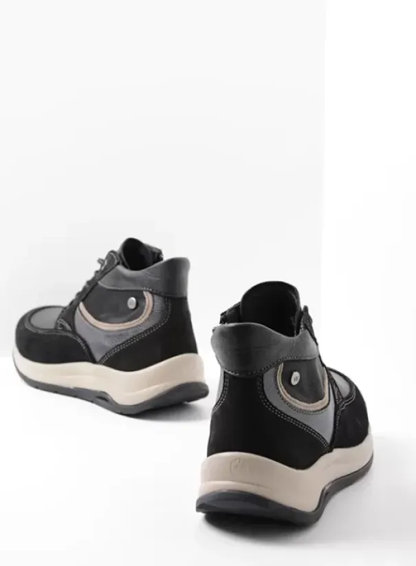 Af en toe een buitje? Daar maak jij je niet langer druk om! Deze stoere enkelhoge veterschoen is namelijk water resistant. Lopen gaat bijna vanzelf, de Scone WR is namelijk uitgerust met een geweldige zool: deze is dempend en heeft een oplopende neus, waardoor op een subtiele manier de afwikkeling van de voet wordt gestimuleerd. Het bovenwerk bestaat uit een combinatie van diverse leersoorten die prachtig bij elkaar passen. Dit geeft de schoen een luxe uitstraling. Zomer, winter, herfst of lente: je kunt erop uit!